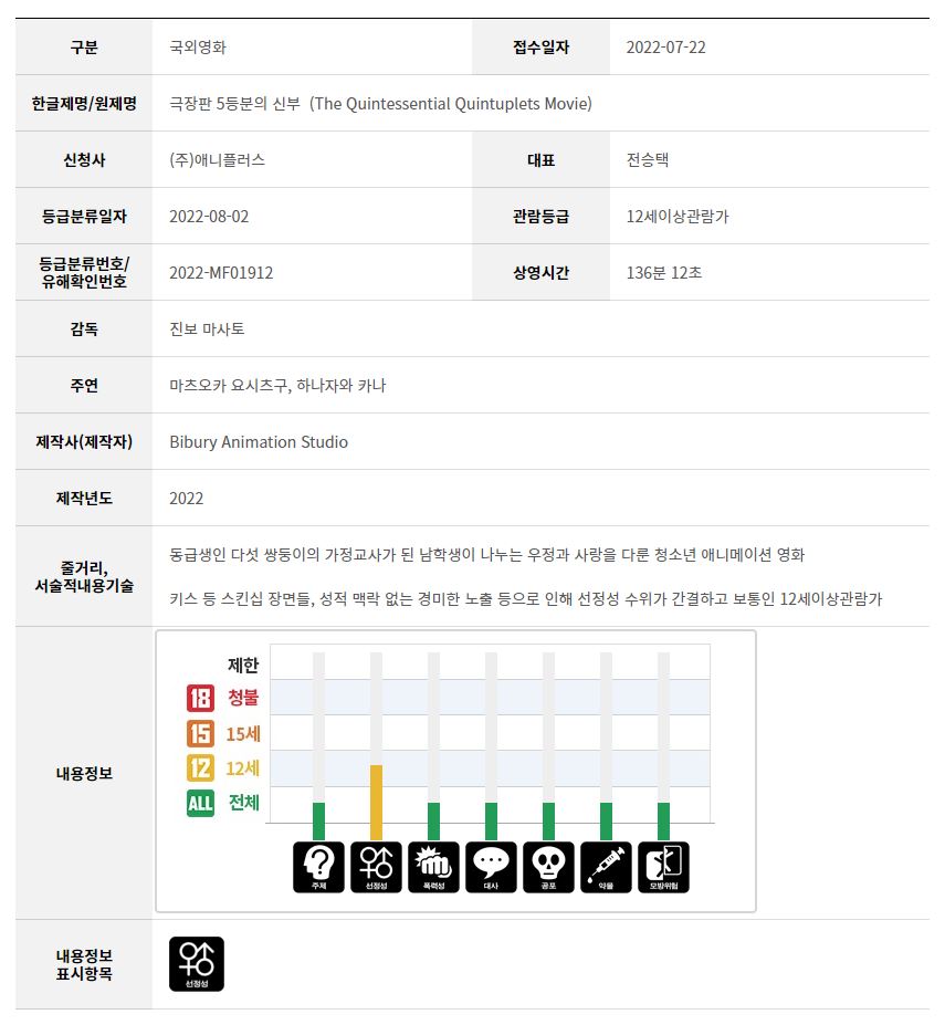 하루바 네기의 만화 5등분의 신부를 원작으로 하는 TV 애니메이션 시리즈의 극장판.