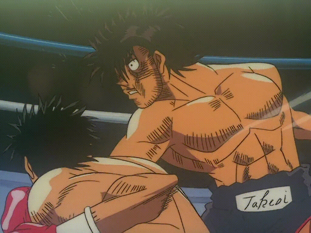 이글은 신사적으로 권투를 하는데 타카무라는 악마라면서 관중들이 야유를 보내는 장면.