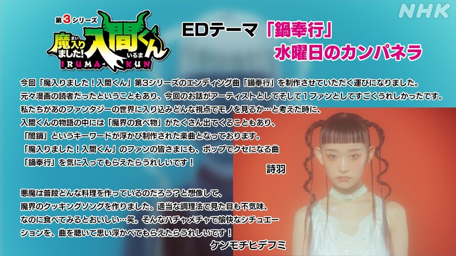 이번에 '악마에 입문했습니다! 이루마군' 3기의 엔딩곡 '나베부교우'을 제작하게 되었습니다.