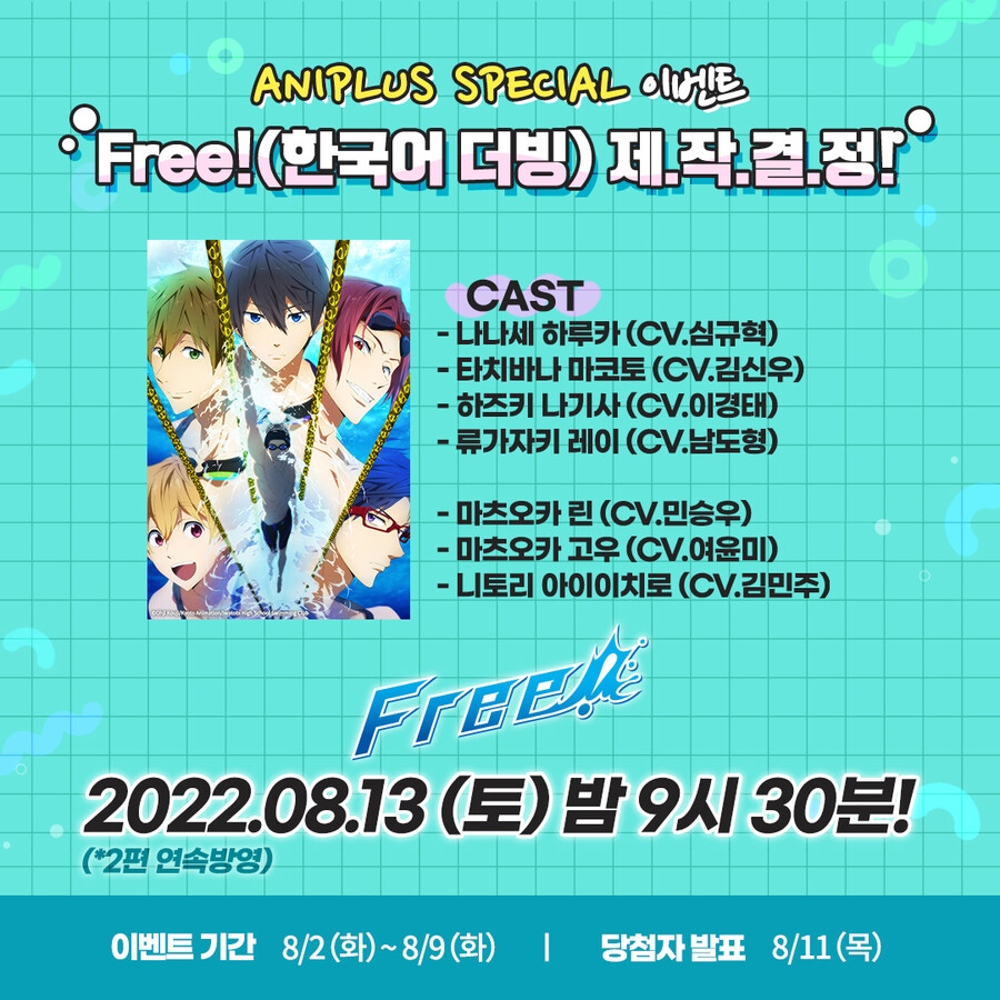 Free! 8월 13일 한국 더빙 성우 공개